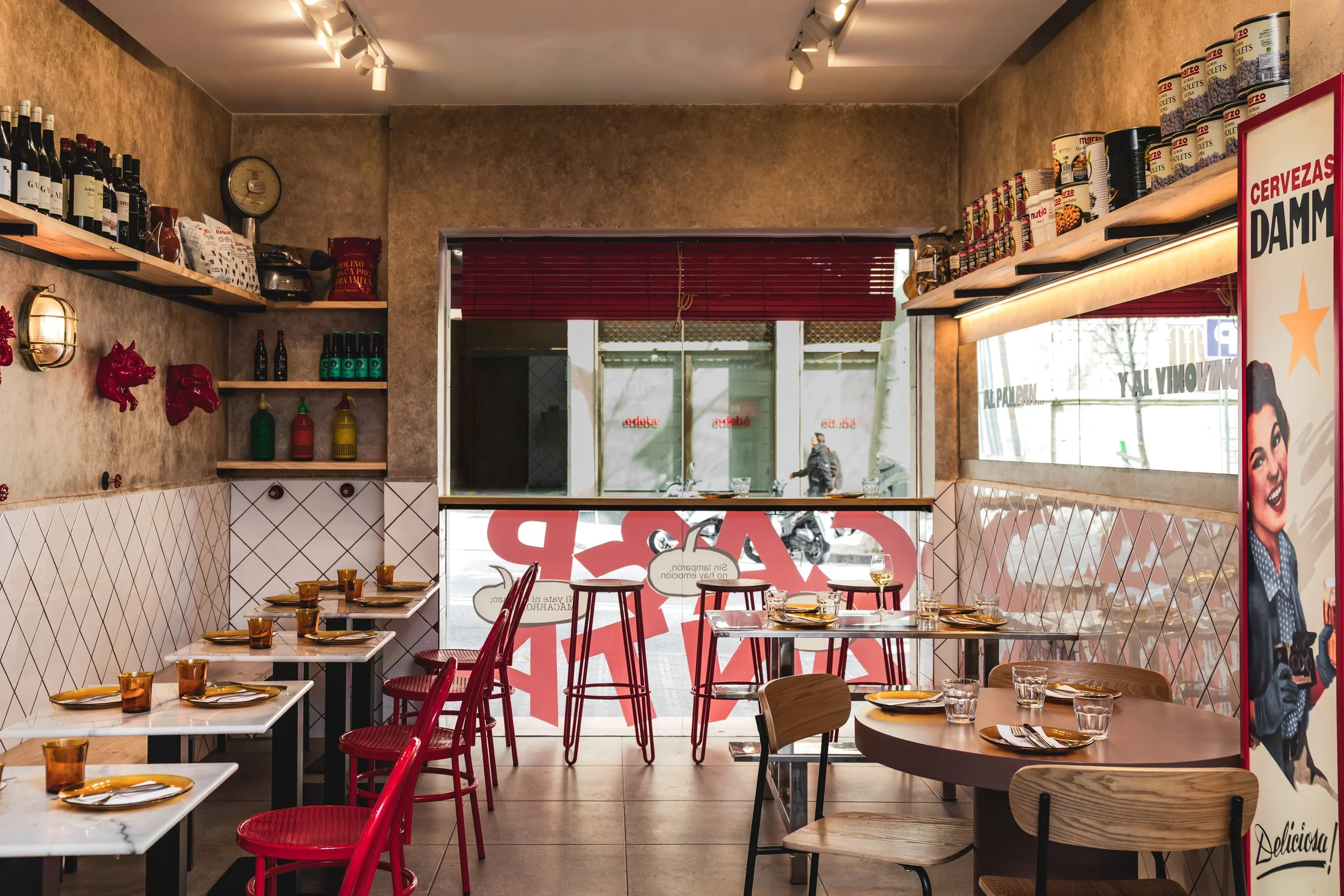 In Sarrià, Colmado Carpanta represents another very Barcelonian line: the reinterpretation of traditional cuisine. Tortillas, roast chicken, recognizable dishes, product, tradition, but all thought from today’s perspective. Barcelona works very well when it mixes memory and contemporaneity, and Carpanta does it in a very natural way. It’s a place where you can go to buy, eat, have a drink or simply stop by, which makes it feel more like a neighborhood place than a restaurant.